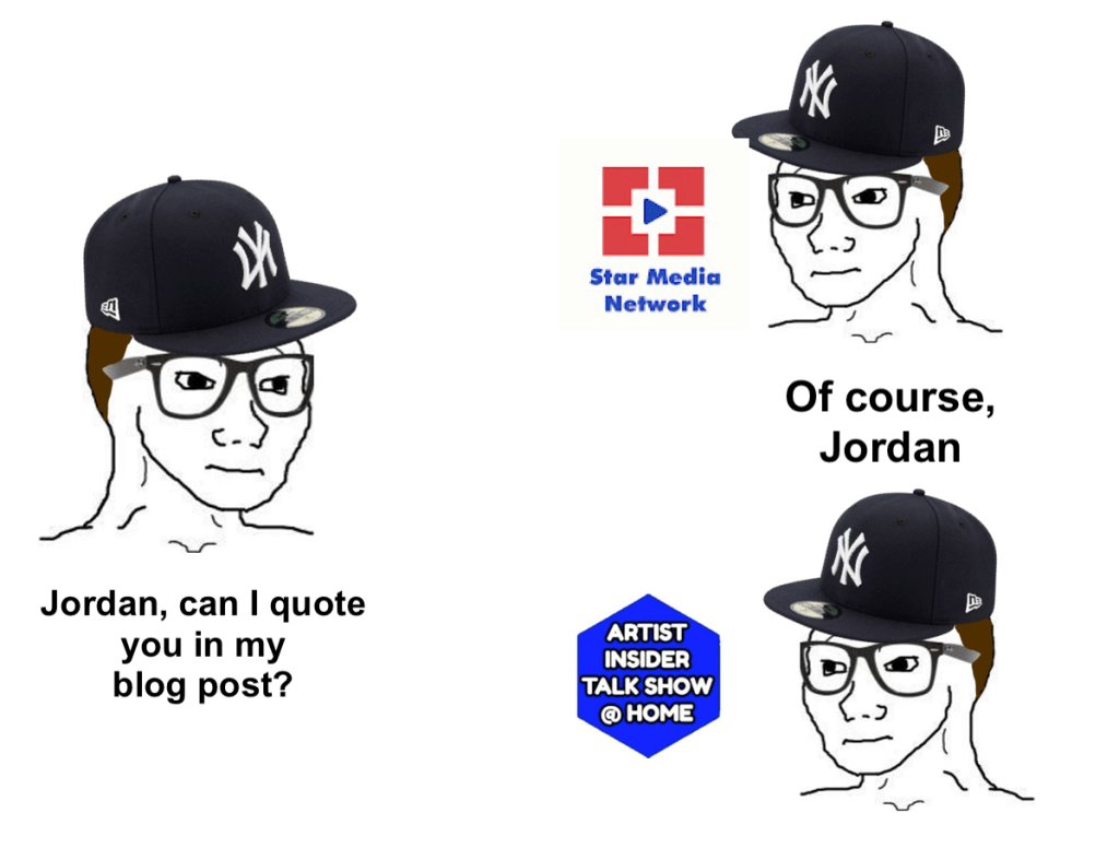 The blog essentially creates a feedback loop in which Jordan is posing as a news reporter, interviewing Star Media Network’s producer (Jordan) or the Artist Insider Host/Producer (Jordan) for comments on stories that he (Jordan) is writing.
